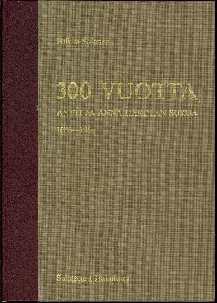 300 vuotta Antti ja Anna Hakolan sukua 1686-1986