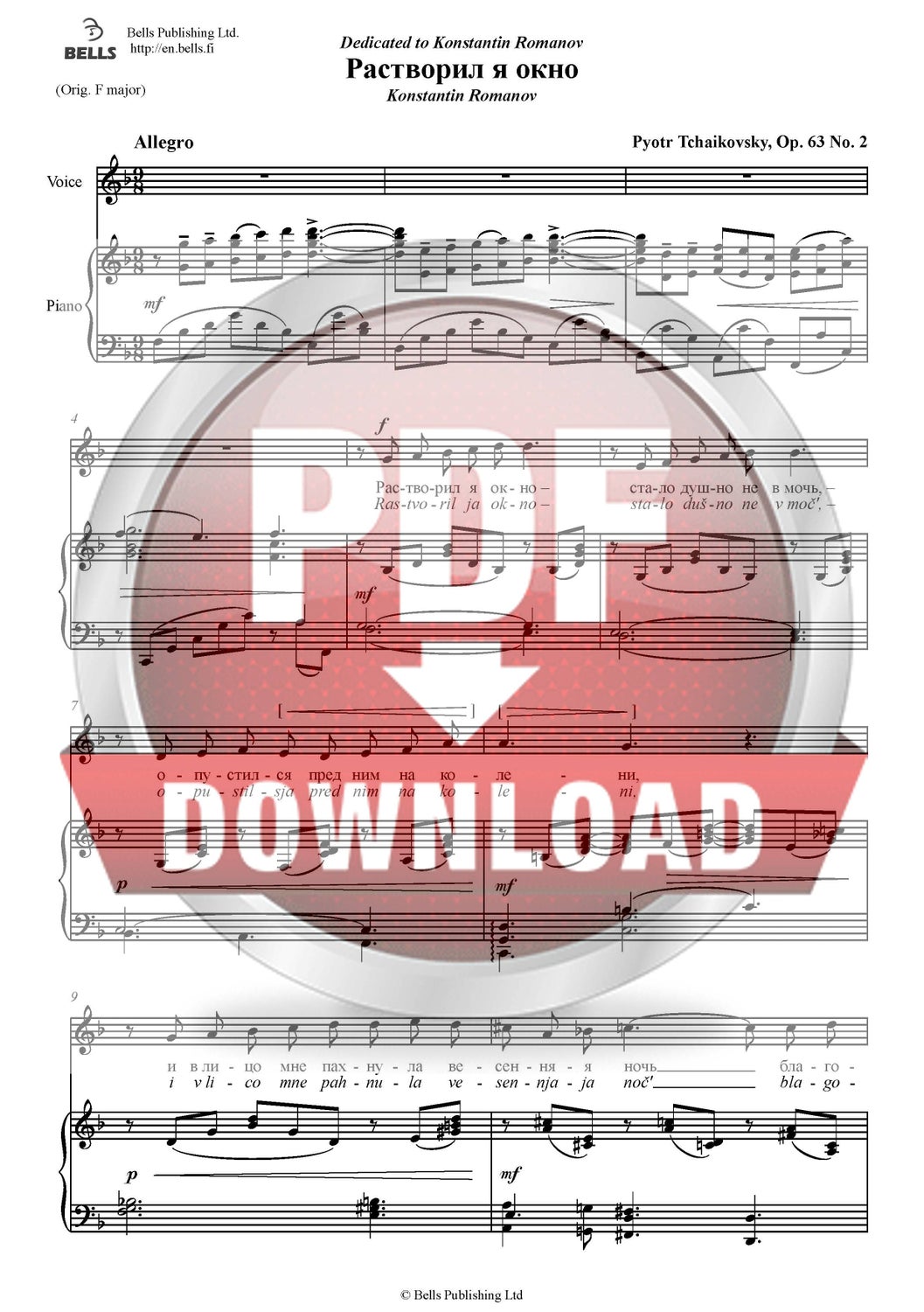 Tšaikovski, Pjotr: Rastvoril ja okno, Op. 63 No. 2